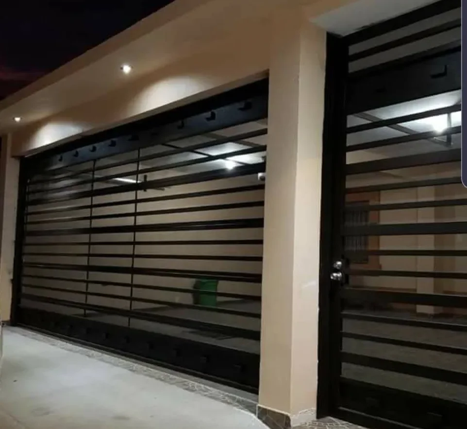 Puertas enrollables: Se enrollan hacia arriba, similar a una persiana, muy usadas en comercios e industrias.